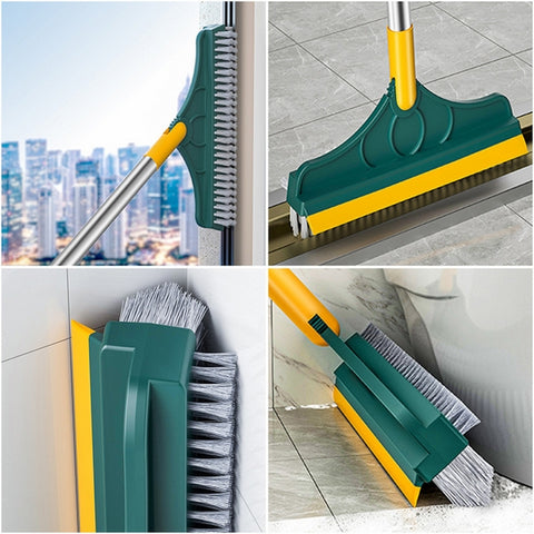 - Floor Scrub Brush 3 in 1 Scrape & brush Push Broom Effective, Easy & Save Effort Brush + scraper 3 in 1 design floor scrub brush with stiff bristle + rubber squeegee, Stiff bristles effectively remove stains on rough and hard floor. Strong cleaning ability, Brush + scrape steps to easily remove the stain, stubborn grime, dirty water, and dust; Improve effectiveness when you doing housework.